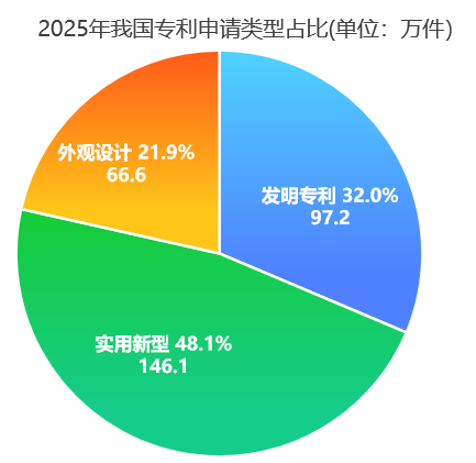 专利授权:发明专利97.2万件(同比减少7%),实用新型146.1万件,外观设计66.6万件。发明专利审查周期缩短至15个月,结案准确率提升至95.6%。PCT国际专利申请7.8万件。我国专利申请人通过海牙协定提交外观设计国际申请2844件。